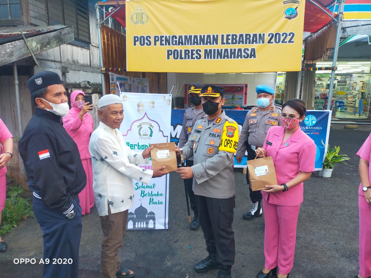 Dalam kegiatan tersebut Kapolres Minahasa bersama Ketua Bhayangkari Cabang Minahasa juga memberikan sedekah kepada masyarakat yang kurang mampu yang akan melaksanakan hari raya Idul Fitri di Kelurahan Kampung Jawa.