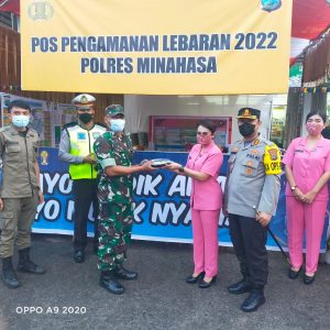 3. Pukul 16.44 Wita Rombongan Kapolres Minahasa Dan Pengurus Bhayangkari Cabang Minahasa membagikan Takjil Serta Bingkisan Di Pos Pam Tataaran;