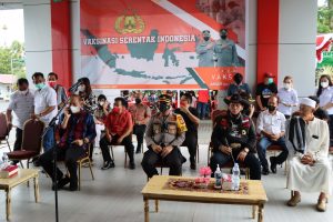 Vaksinasi yang diprakarsai oleh Polri bekerja sama dengan Pemkab Minahasa dipantau langsung Direktorat Intelkam Polda Sulut mewakili Kapolda Sulut, Kapolres Minahasa AKBP Tommy Bambang Souissa, Sekretaris Daerah Minahasa Frits Muntu, para Asisten, PJU Polres Minahasa, Kepala OPD Minahasa, para tokoh agama serta Ormas.