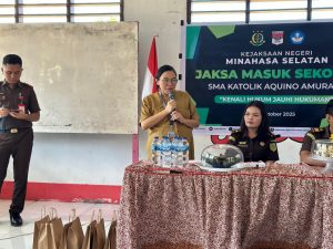MINSEL SULUT POST – Kejaksaan Negeri (Kejari) Minahasa Selatan (Minsel) menyelenggarakan kegiatan program Jaksa Masuk Sekolah (JMS) Tahap IV. Kegiatan Jaksa Masuk Sekolah Kejari Minsel kali ini dilaksanakan di Sekolah Menengah Atas Katolik Aquino Amurang, Selasa 14/10/2025.