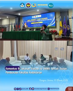 MINAHASA SULUT POST – Universitas Negeri Manado (UNIMA) menerima kunjungan tim visitasi dari Kementerian Kesehatan Republik Indonesia dalam rangka penilaian dan verifikasi usulan pembukaan Fakultas Kedokteran UNIMA. Kegiatan ini merupakan bagian dari tahapan penting dalam proses pengajuan program studi kedokteran yang sedang diupayakan oleh UNIMA.