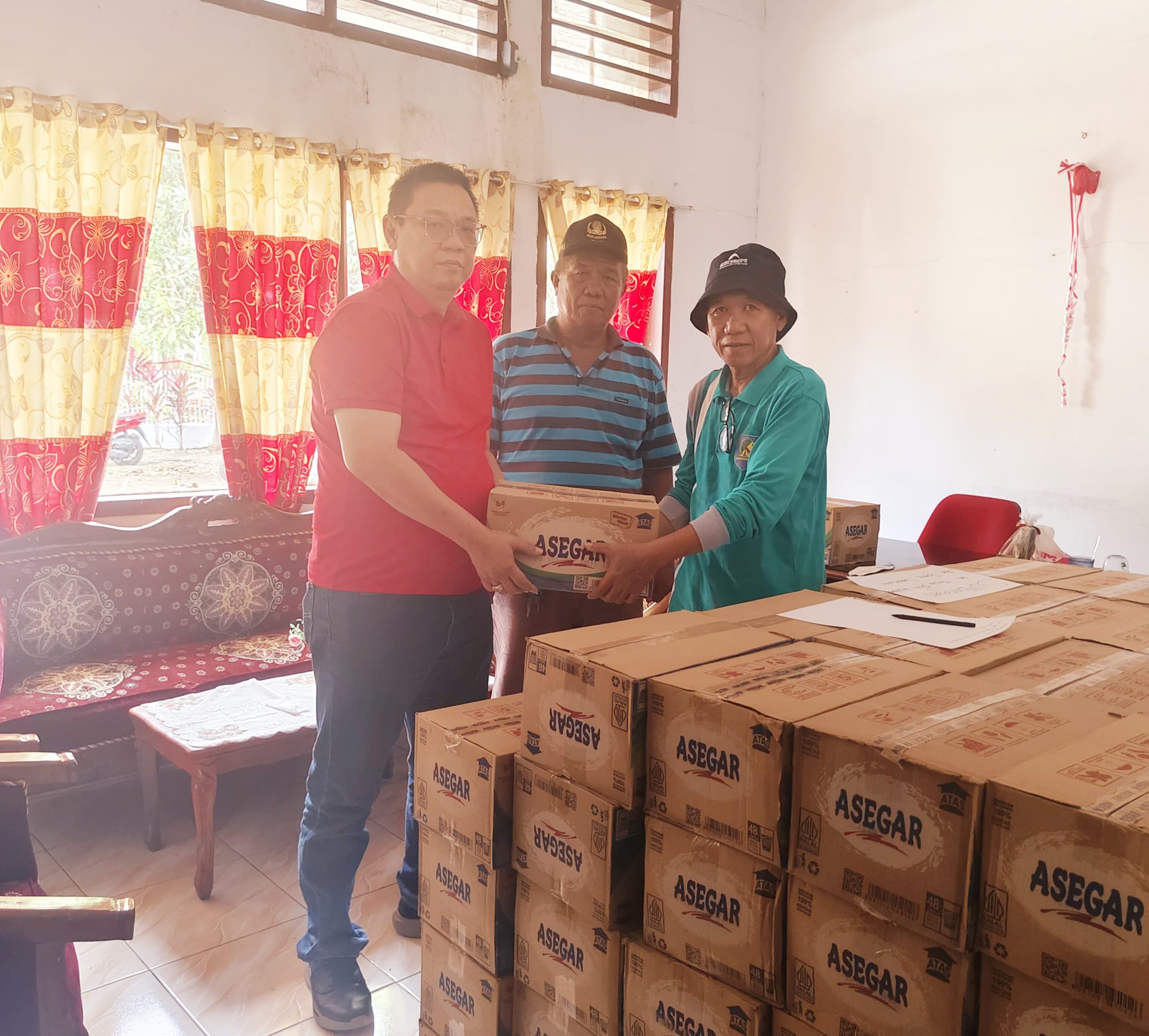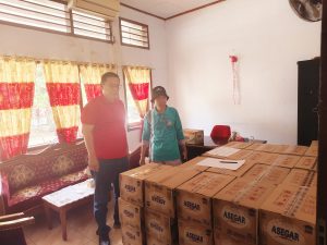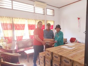 Foto; Ketua DPRD Bolmong dari PDI-Perjuangan, saat melakukan kunjungan dan serahkan bantuan 100 dos air mineral.