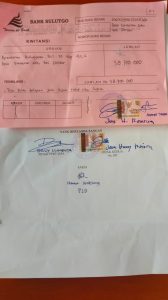 Penyerahan dihadiri oleh perangkat desa, Sekdes, Bendes dan dari pihak bank SulutGo kecamatan Kawangkoan.