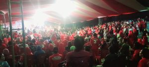 BOLMONG,SULUTPOST –Ribuan warga padati kampanye dialogis Pasangan Calon Bupati dan Wakil Bupati Bolaang Mongondow Nomor Urut 3, DR.Ir. Limi Mokodompit MM, dan Welty Komaling SE, MM, di Kelurahan Inobonto, Kecamatan Bolaang (Bolmong-red) Kamis 10 Oktober 2024.