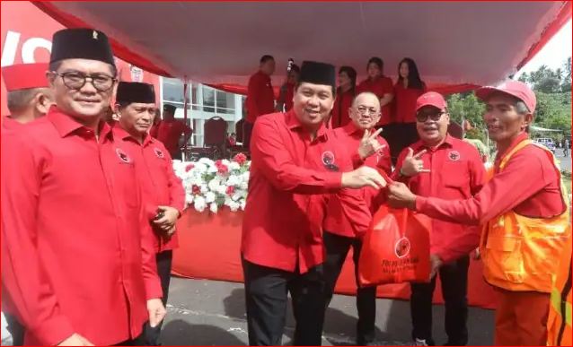 Pada momentum ini, Bupati Minahasa Utara (Minut) sekaligus Wakil Ketua DPD PDIP Sulut Bidang Ekonomi, Joune Ganda, bersama Wakil Gubernur Sulut sekaligus Wakil Ketua DPD PDIP Sulut Steven Kandouw, Ketua PDI Perjuangan Minut Denny Lolong serta keluarga besar PDI Perjuangan Sulut, melangsungkan upacara bendera hingga penyerahan bingkisan kepada petugas kebersihan dari Dinas Lingkungan Hidup Pemkab Minut.