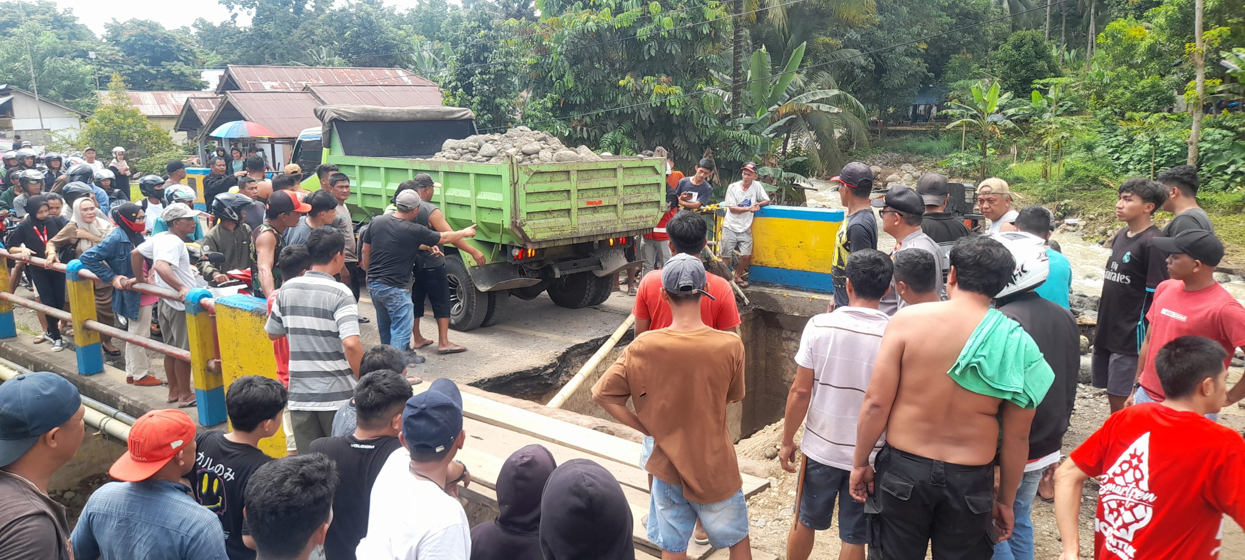 Memastikan informasi tersebut, awak media langsung mendatangi lokasi jembatan putus Desa Muntoi, dan benar terlihat di lokasi itu tanpak ada beberapa orang yang berdiri memegang dos Aqua dalam bentuk sumbangan berdasarkan keiklasan dari para pengendara roda dua yang melewati papan lintasan yang dijadikan alat bantu jalur alternatif bagi pengendara dan itu disiapkan sendiri oleh warga.