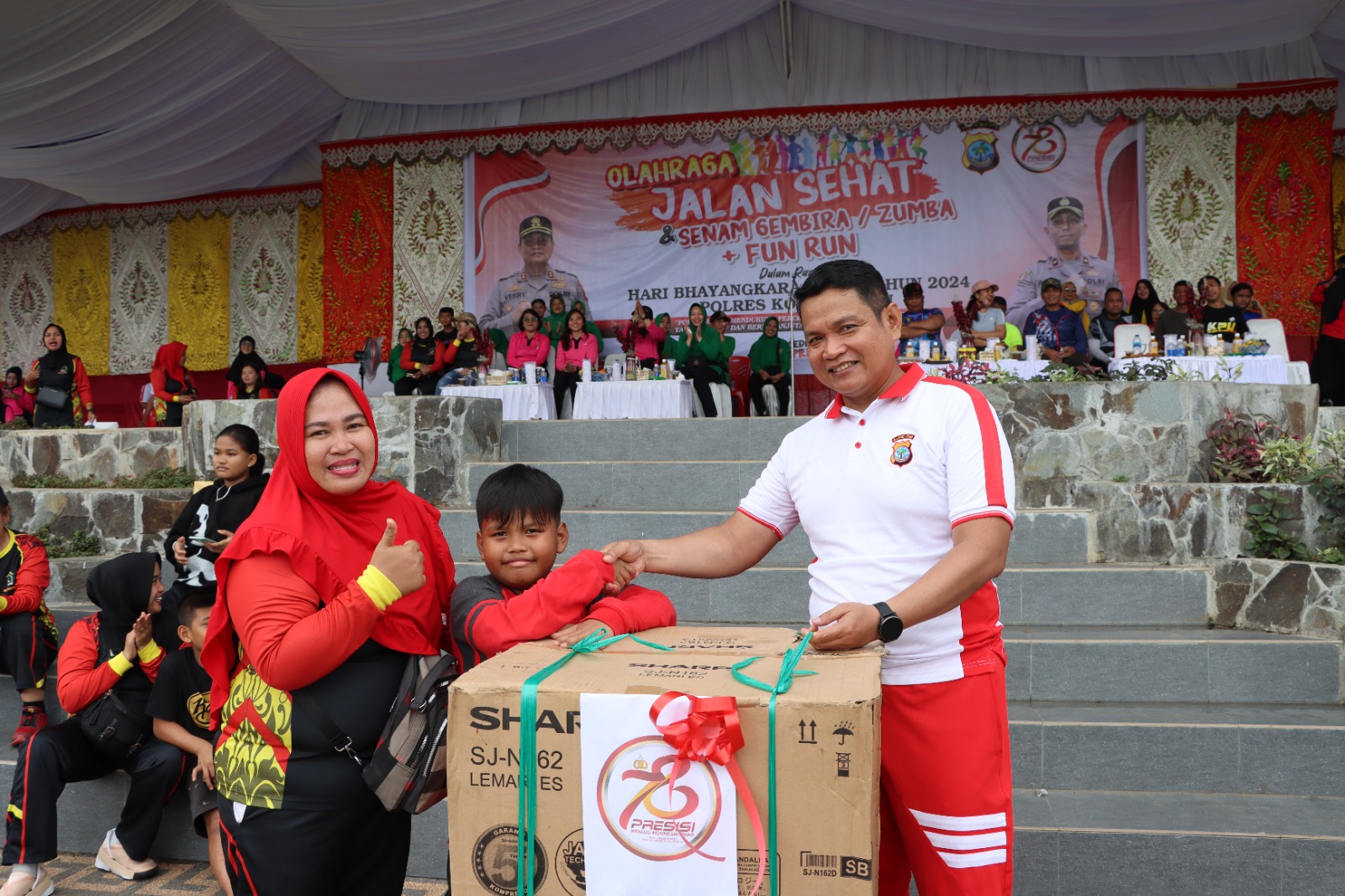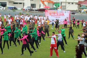 Mereka berlari dan berjalan sambil menikmati udara segar di pagi hari, sembari menunjukkan dukungan dan apresiasi terhadap peran Bhayangkara Polri dalam menjaga keamanan dan ketertiban masyarakat.
