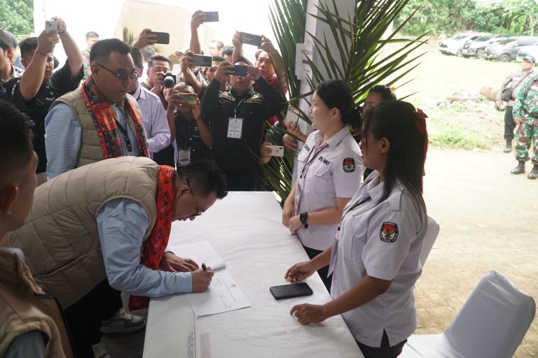 Tahapan pendaftaranpun dijalani kedua pasangan dengan lancar yang berupa verifikasi berkas dan diakhiri dengan penyerahan surat rekomendasi pemeriksaan kesehatan di RSUP Prof. Kandouw Malalayang oleh Ketua KPU Minut Hendra Lumanauw.