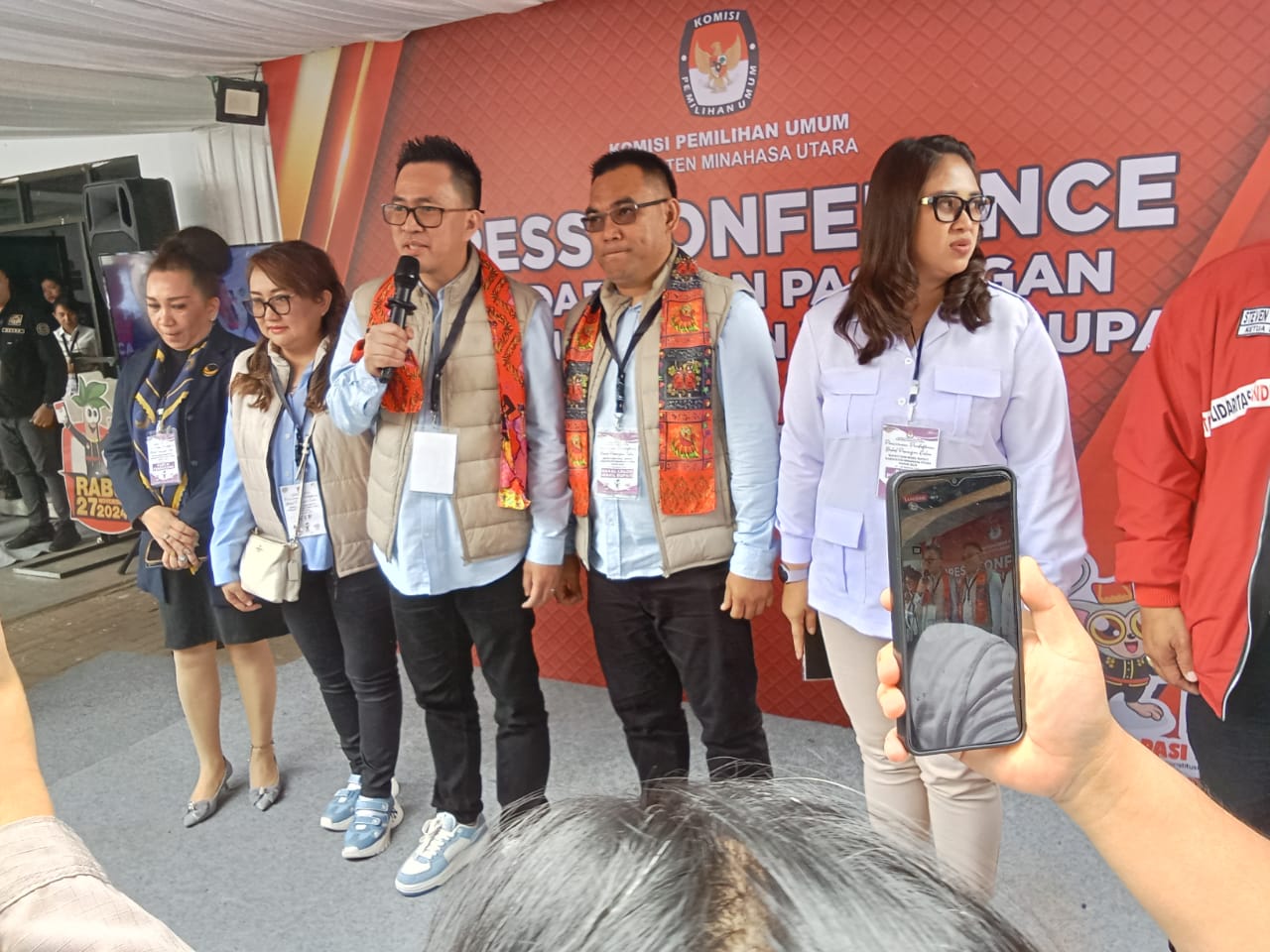 Kedua pasangan didampingi ketua-ketua partai pengusung yakni Partai Nasdem Peggy Rumambi, PSI Steven Tumilantow, dan Partai Gerindra Chintya Erkles yang juga istri bakal calon Wakil Bupati Christian Kamagi.