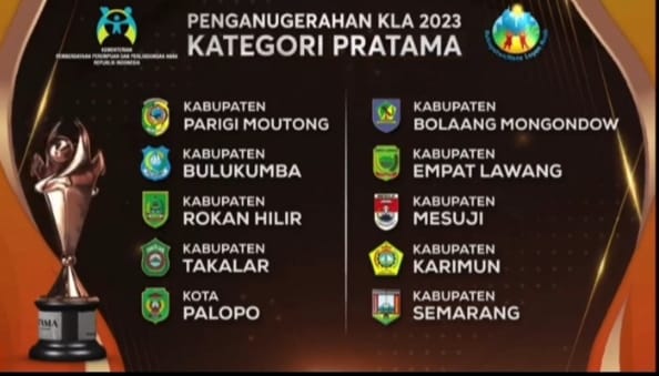 BOLMONG,SULUTPOST-Pemerintah Kabupaten Bolaang Mongondow (Pemkab Bolmong) kembali meraih Anugerah penghargaan sebagai Kabupaten Layak Anak (KLA) Kategori Pratama Tahun 2023.