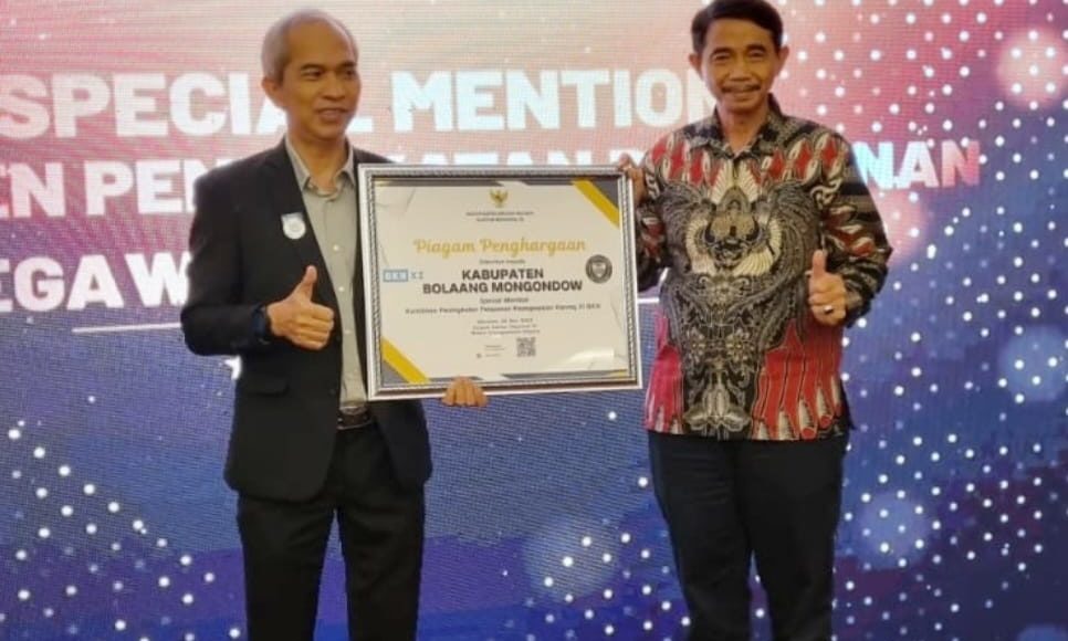 Penghargaan tersebut diterima Kepala BKPP Bolmong Umarudin Amba, di acara BKN Award Regional XI Manado, yang dilaksanakan di Hotel Merlyn Park Jakarta.