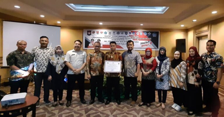 Piagam penghargaan tersebut diserahkan oleh Kemendagri pada acara konfirmasi dan reviu evaluasi LPPD Kabupaten/Kota se-Sulawesi Utara (Sulut), Jumat 14 Juli 2023, tepatnya di Hotel Gran Puri, Manado.