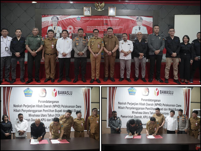 Pemkab Minut Tandatangani Naskah Hibah Daerah Dengan KPU dan Bawaslu