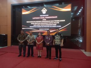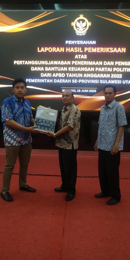 KOTAMOBAGU,SULUTPOST-Pemerintah Kota Kotamobagu menerima Laporan Hasil Pemeriksaan atas Pertanggungjawaban Penerimaan dan Pengeluaran Dana Bantuan Partai Politik Tahun anggaran 2022 dari Badan Pemeriksa Keuangan (BPK) Republik Indonesia Perwakilan Sulawesi Utara, Jumat (16/6/23).