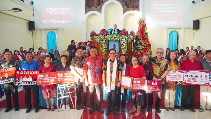 dari Pemerintah Provinsi Sulut untuk 11 rumah ibadah dan Pemerintah Kabupaten Minahasa Utara memberikan bantuan uang dan barang kepada 21 rumah ibadah.