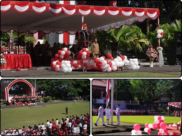 Memakai pakaian adat, Sekretaris Daerah (Sekda) Minut Ir Novly G Wowiling M.Si memimpin upacara yang diikuti oleh seluruh kepala perangkat daerah, para pelajar dan guru-guru se-Kabupaten Minahasa Utara yang juga mengenakan busana adat.