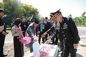 Dimana ucap Wali Kota, Para Pahlawan telah mengajarkan kepada kita bahwa, kita bukan bangsa pecundang. Kita tidak akan pernah rela untuk bersimpuh dan menyerah kalah. Sebesar apapun ancaman dan tantangan akan kita hadapi. Dengan tangan mengepal dan dada menggelora.