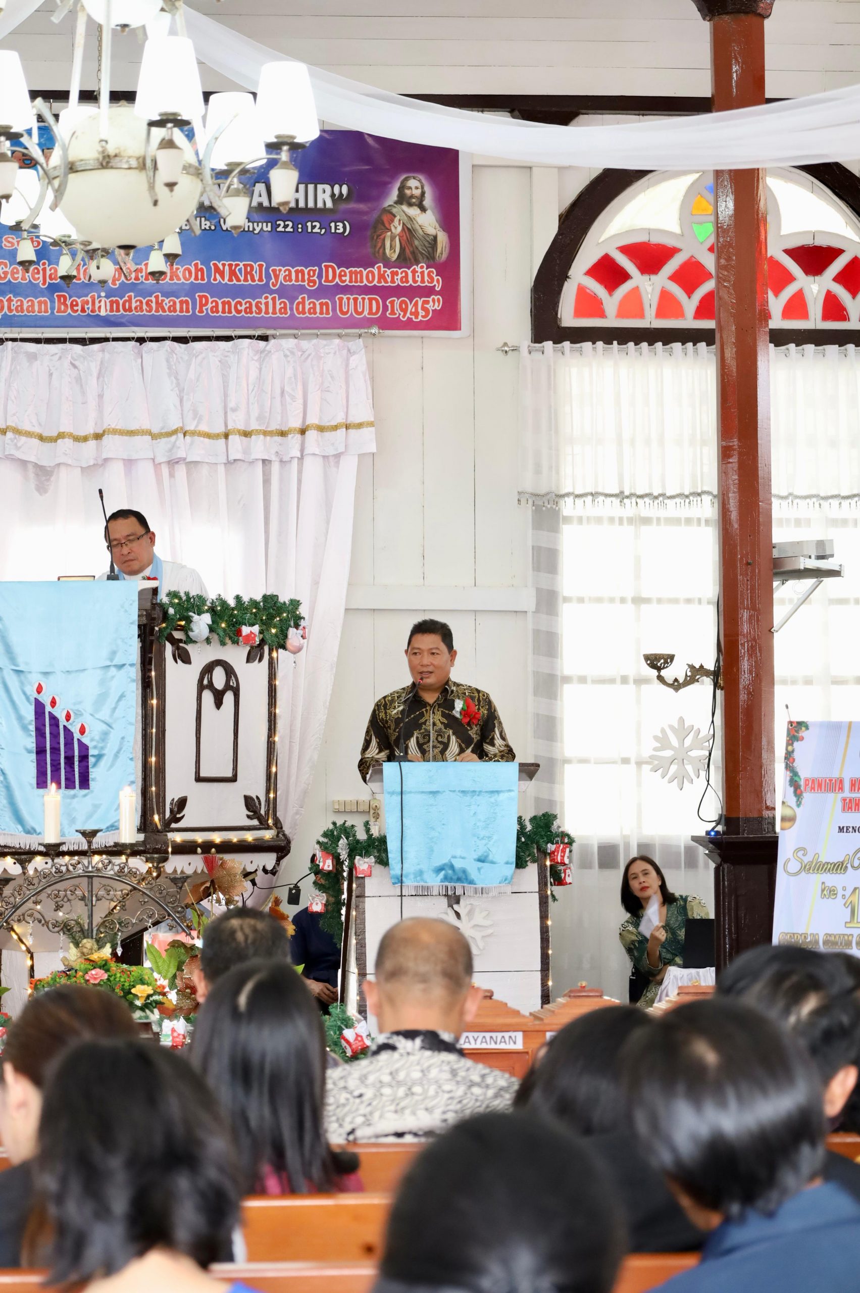 “Namun tidak sekedar benda, tetapi narasi iman, doa, puji, sembah, sukacita dan syukur dinaikkan dari Gedung Gereja ini. Kita merenung di masa Advent kedua ini menanti Dia yang akan datang. Kita belajar predikat yang melekat pada Dia Sang Raja Damai,” ucap Khadim Pdt Heski Manus dalam khotbahnya.