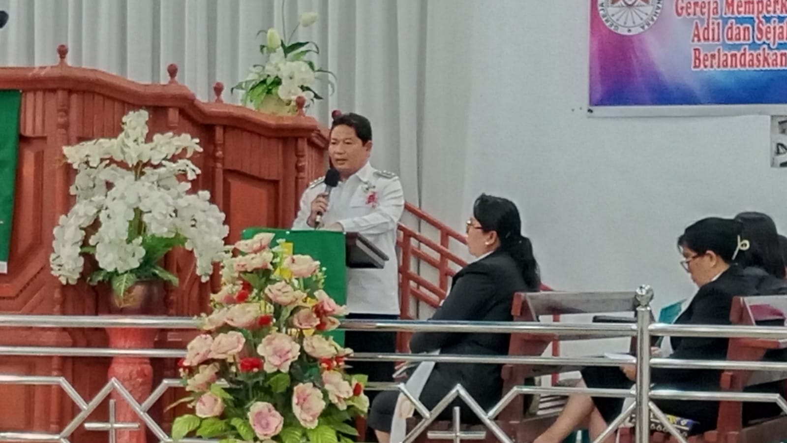 “Atas nama Pemerintah Kabupaten Minahasa, Saya Bupati Minahasa, Dr. Jemmy Stani Kumendong, M.Si, bersama keluarga, Saya mengucapkan selamat hari ulang tahun Ke-143 Jemaat GMIM Sion Noongan,” ucap Bupati.