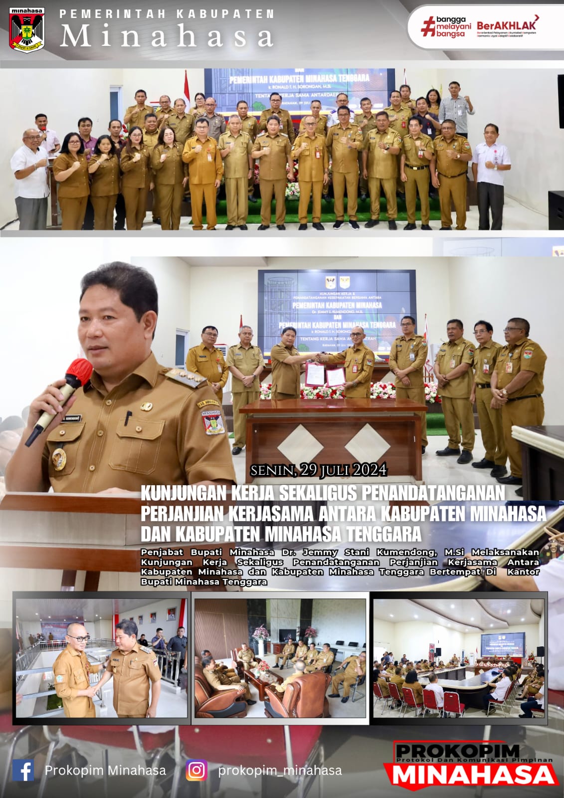 MINAHASA, SULUTPOSTonline.id – Penjabat Bupati Minahasa Dr. Jemmy Stani Kumendong, M.Si melakukan Kunjungan Kerja (Kunker) Sekaligus Penandatanganan Perjanjian Kerjasama Antara Kabupaten Minahasa dan Kabupaten Minahasa Tenggara (Mitra). Senin, (29/72024) Di Kantor Bupati Minahasa Tenggara.