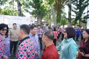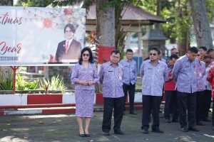 Pada kesempatan ini hadir Sekretaris Daerah, Dr Lynda Watania, Asisten I Riviva Maringka, Asisten II Wenny Talumewo, Asisten III Vicky Tanor, jajaran perangkat daerah, para Camat dan ASN serta THL jajaran Pemkab Minahasa. (Wil/Adv)