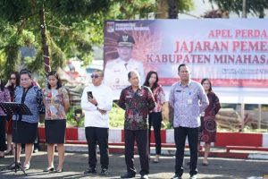 MINAHASA, SULUTPOSTonline.id – Penjabat Bupati Minahasa Dr. Jemmy S. Kumendong MSi memimpin Apel Kerja Perdana tahun 2024 yang digelar di halaman Kantor Bupati Minahasa, Kamis (04/12) pagi.