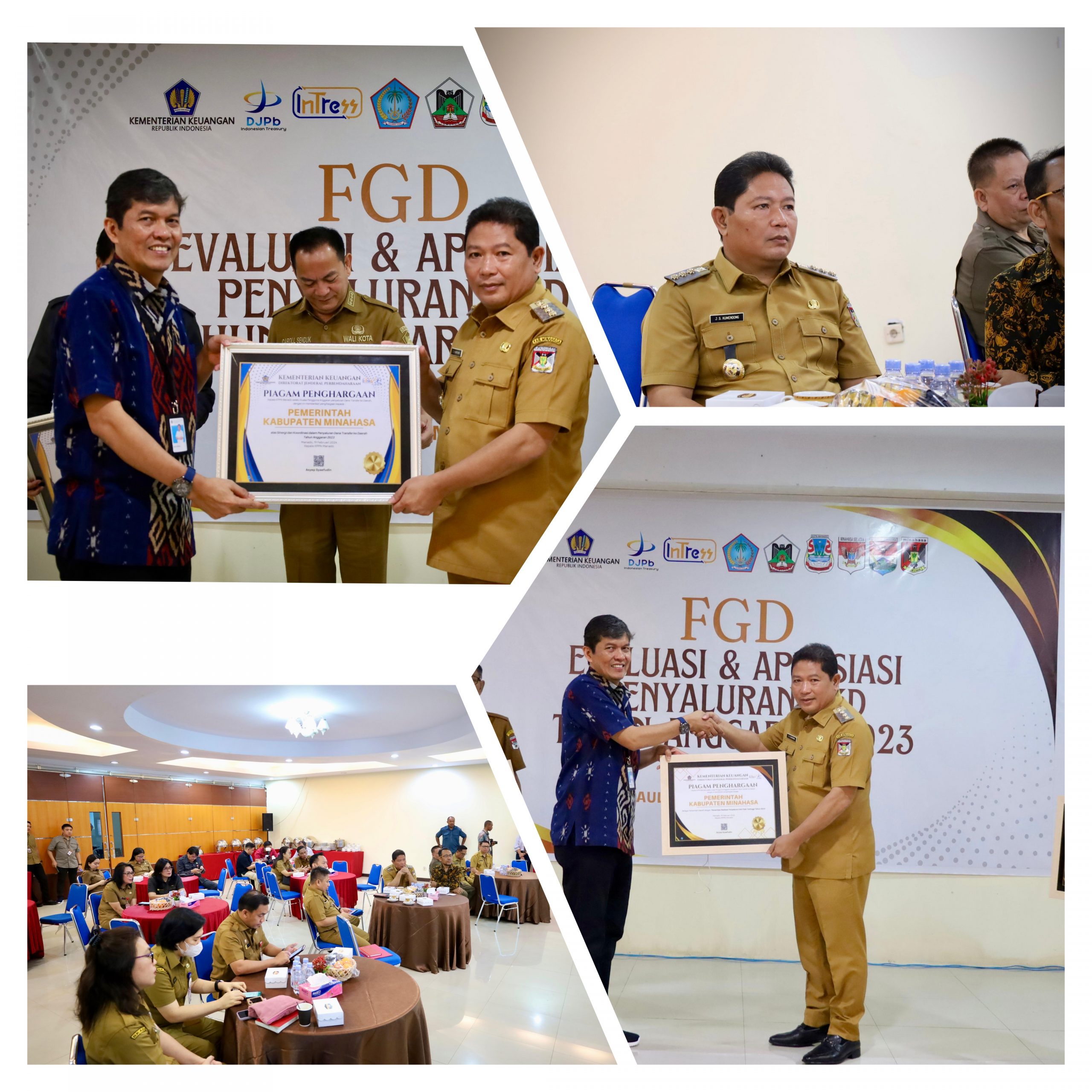 Penjabat Bupati Minahasa, Dr Jemmy Stani Kumendong MSi menerima langsung penghargaan dari Kementerian Keuangan Direktorat Jenderal Perbendaharaan,yang diserahkan langsung oleh Kepala KPPN Manado Asep Syaefudin.