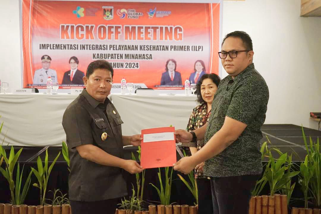 MINAHASA, SULUTPOSTonline.id –  Penjabat Bupati Minahasa Dr. Jemmy Stani Kumendong, M.SI menghadiri sekaligus membuka kegiatan Kick Off Meeting Implementasi Integrasi Pelayanan Kesehatan Primer Kabupaten Minahasa Tahun 2024 yang dilanjutkan dengan penyerahan SK Piloting Project Penerapan ILP dan Penandatanganan Komitmen bersama Pemerintah Daerah dan Seluruh Lintas Sektor, Lintas Program Terkait Penerapan ILP di Kabupaten Minahasa Bertempat di Hotel Yama Resort Tondano, Jumat (21/6/24).