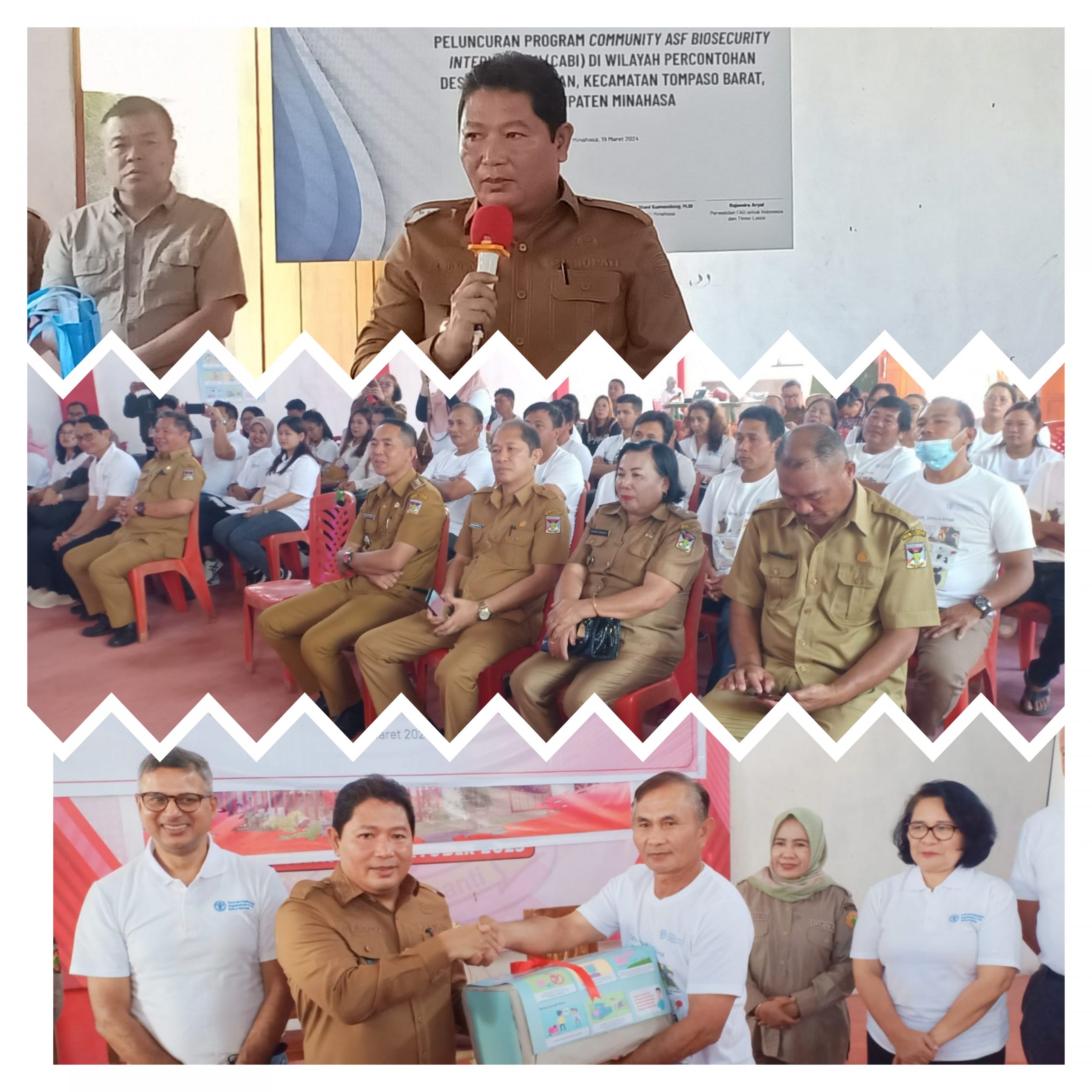 MINAHASA, SULUTPOSTonline.id – PJ Bupati Minahasa Dr. Jemmy Stani Kumendong M.Si menghadiri Lounching Implementasi Peluncuran Program Community ASF Biosecurity Intervention (CABI) bagi peternak Babi skala mikro kecil di wilayah percontohan Provinsi Sulawesi Utara yang diselenggarakan Kementerian Pertanian R.I, yang bertempat di Balai Desa Pinabetengan Kecamatan Tompaso Barat, Selasa (19/3/2024).