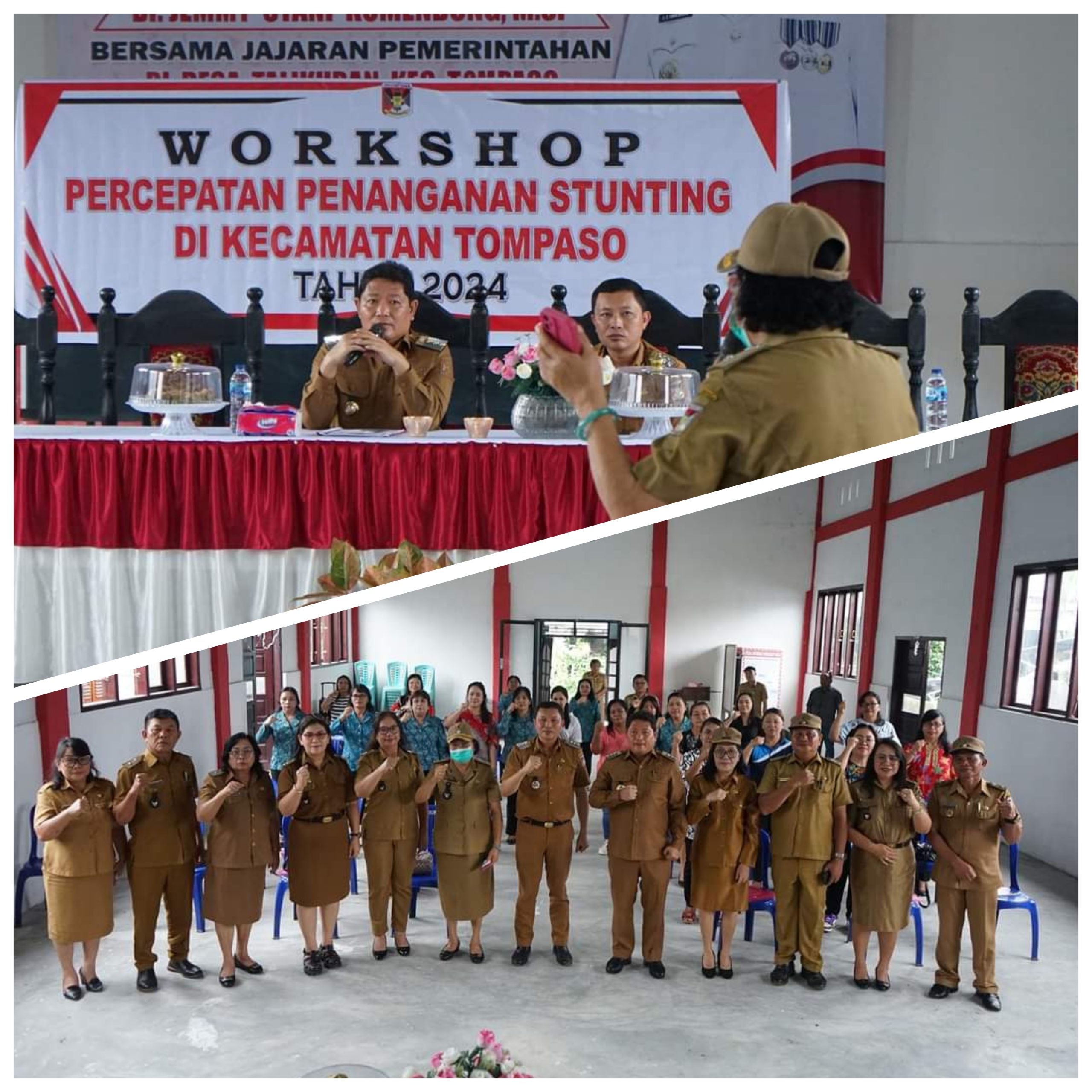 Saat meninjau Workshop Percepatan Penanganan Stunting di Kecamatan Tompaso tahun 2024, Selasa (04/06) di Balai Desa Tompaso, Bupati Kumendong melakukan dialog dan pengecekan langsung penganggaran dan penanganan stunting melalui dana desa kepada para Hukum Tua.