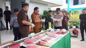 MINAHASA, SULUYPOSTONLINE.id – Penjabat (PJ) Bupati Minahasa, Noudy Tendean, menghadiri kegiatan pemusnahan barang bukti tindak pidana umum yang telah berkekuatan hukum tetap di Kantor Kejaksaan Negeri Minahasa Tondano, Senin (4/12/2024).
