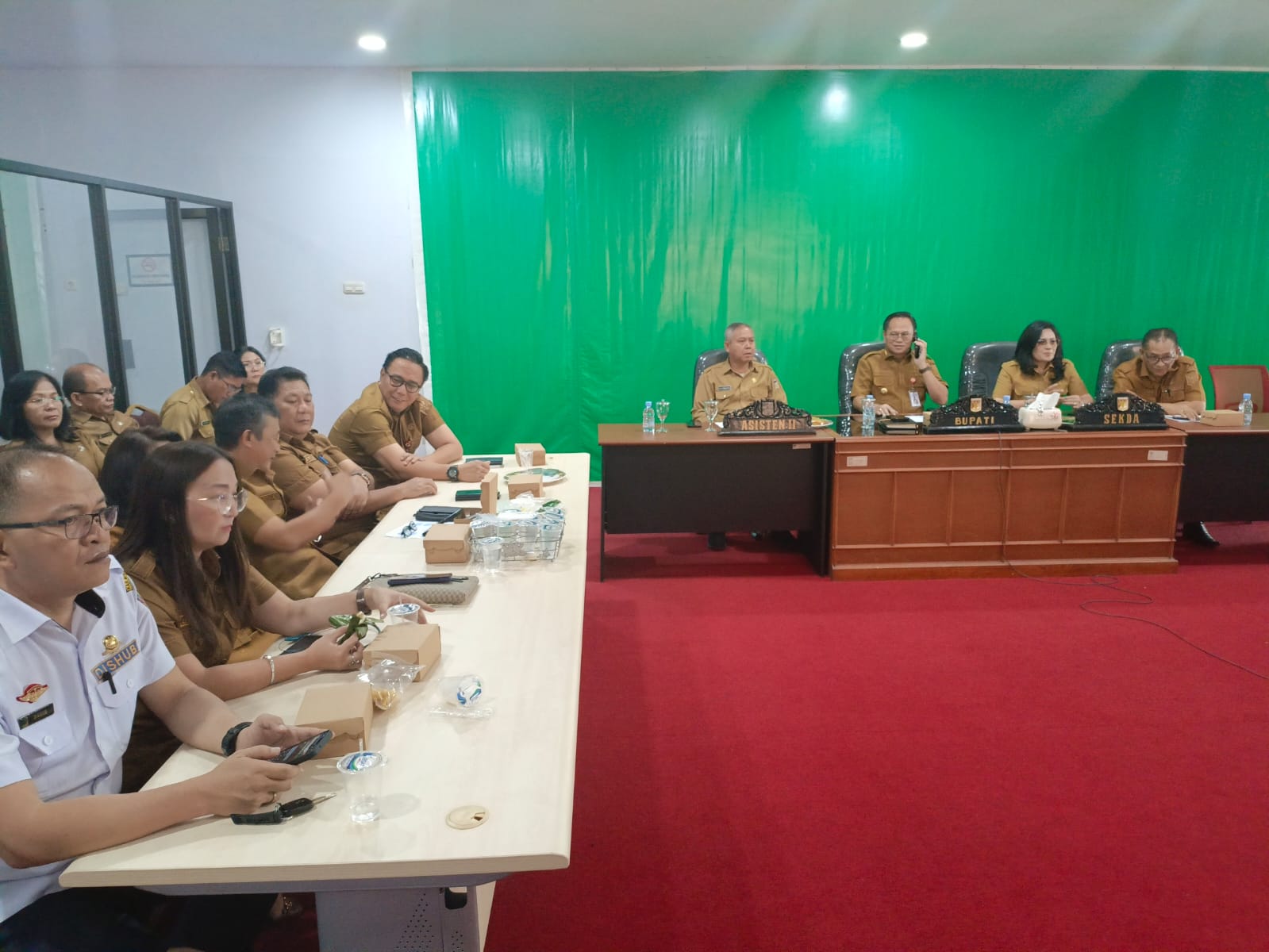 Minahasa,.SULUTPOSTONLINE.id – Penjabat Bupati Minahasa, Dr. Noudy R.P. Tendean, S.IP, M.Si, didampingi Sekretaris Daerah, Dr. Lynda D. Watania, M.M, M.Si, menghadiri rapat koordinasi pengendalian inflasi yang dirangkaikan dengan sosialisasi program Pemeriksaan Kesehatan Gratis (PKG), Senin (20/1/2025) bertempat di Ruang Command Center Kantor Bupati Minahasa.