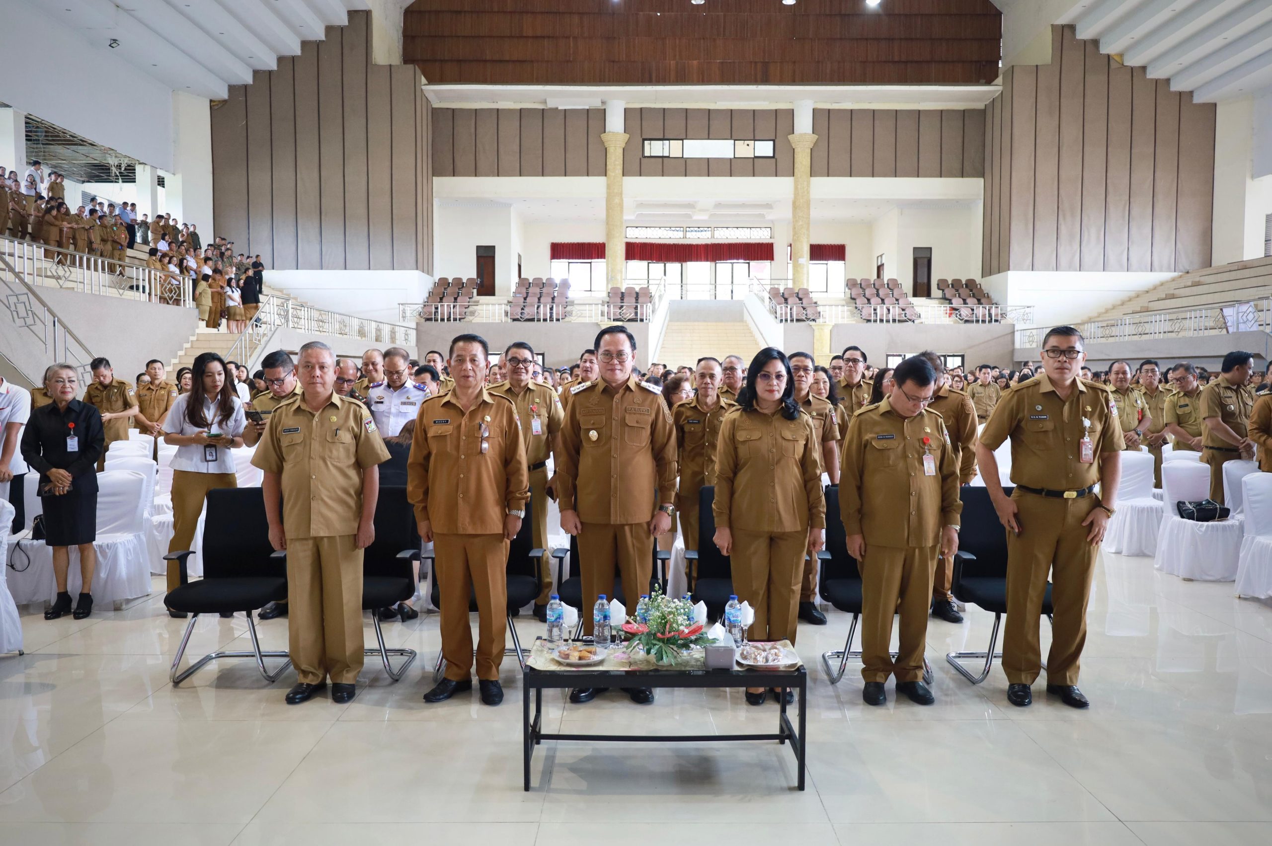 Turut hadir, Asisten 1, Asisten II, Asisten III, Para Kadis, Kaban, Kabag, serta segenap Jajaran ASN dan THL Pemkab Minahasa.(Wil)