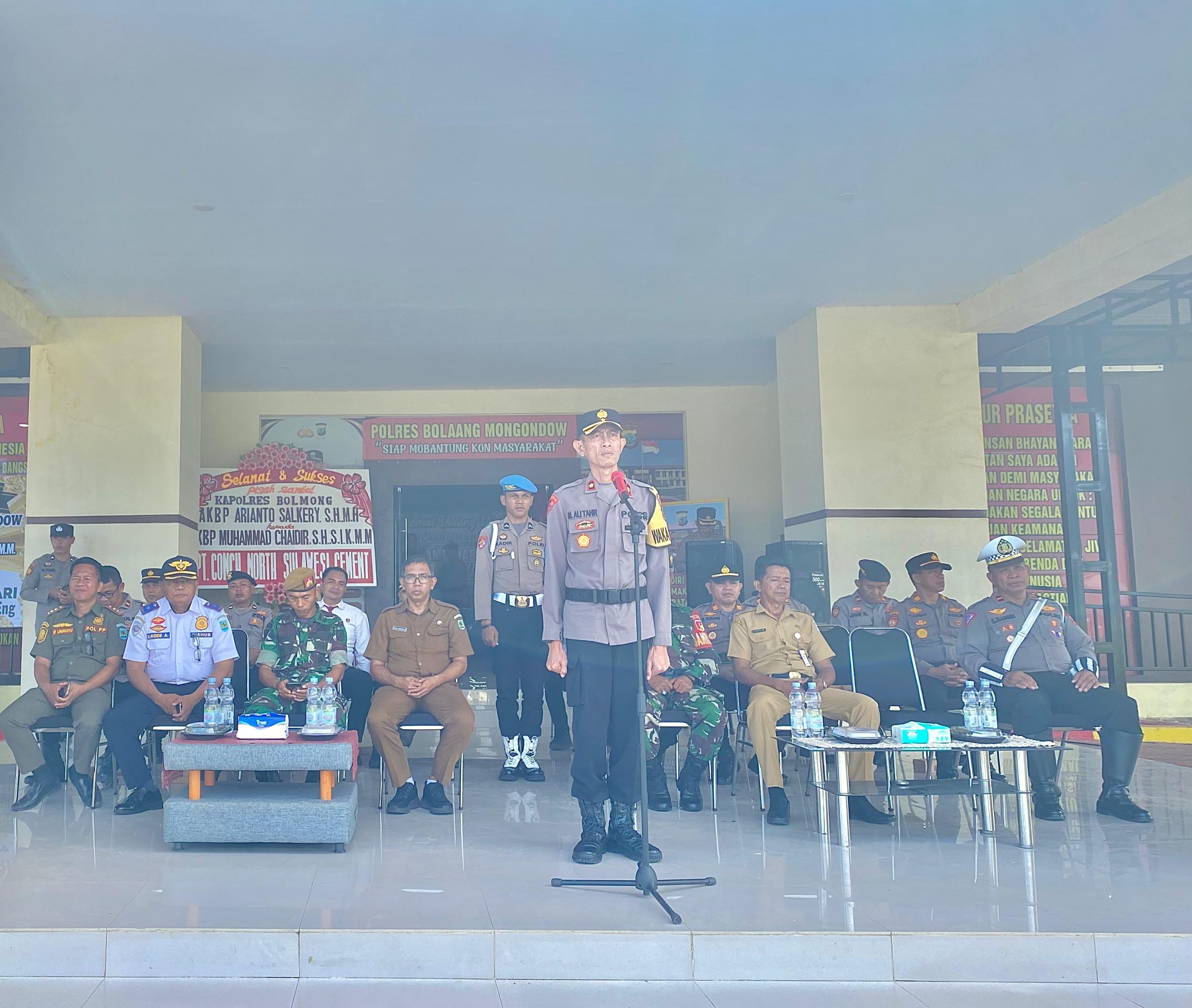 Dalam apel ini dihadiri oleh Kompol Muh. Ali Tahir, SH (Wakapolres Bolmong), Lettu Mohamad Hasil Lessy (Mewakili Dandim 1303 Bolmong) Laode A.(Mewakili Kepala Dinas Perhubungan), IP Linggotu (Mewakili Kasat Pol PP), Rusli Suratinoyo (Mewakili Kepala Dinas PU), Kapten Arm Saharudin (mewakili Dan Yon Armed 19/ Bogani), Para PJU Polres Bolmong bersama Staf Polres Bolmong.
