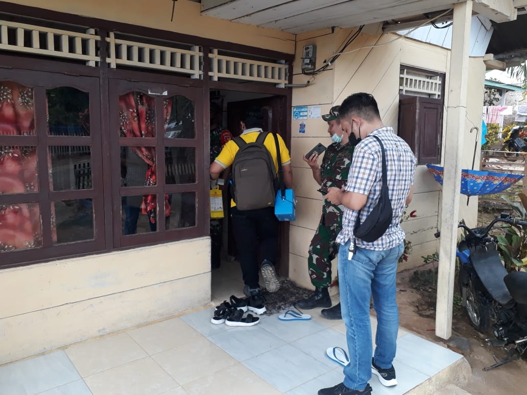 Kapolsek dengan delapan anggotanya bersama tujuh tenaga kesehatan puskesmas, serta Babinsa naik turun rumah menyisir penduduk yang belum divaksin.