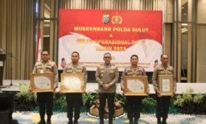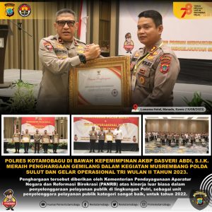 KOTAMOBAGU,SULUTPOST-Kepolisian Resort (Polres) Kotamobagu di bawah kepemimpinan AKBP Dasveri Abdi SIK meraih penghargaan gemilang dalam kegiatan Musrembang Polda Sulut dan Gelar operasional Triwulan II tahun 2023, Kamis (10/08/2023) bertempat di Luwansa Hotel Manado.