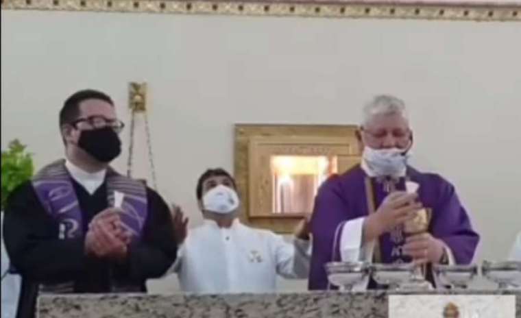 Sebuah video Misa menunjukkan Leite sedang membaca bagian dari Doa Syukur Agung dan menerima Komuni.