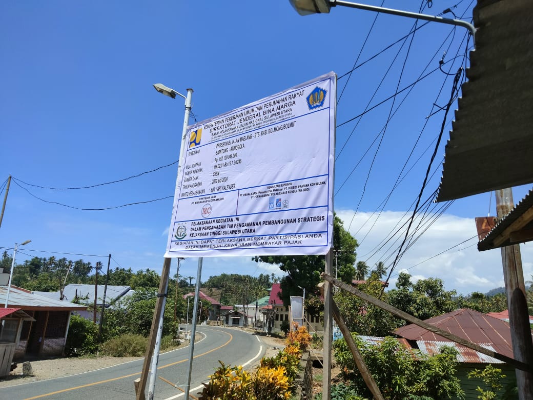 Tambahnya juga, Bilamana semua kegiatan yang ditangani oleh Balai Pelaksanaan Jalan Nasional (BPJN) Sulawesi Utara, khususnya yang ada di ruas Bolaang Mongondow Utara (Bolmut), semuanya terdapat papan proyek.tandasnya meluruskan adanya kabar miring tersebut.