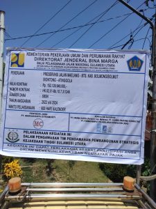 BOLMUT,SULUTPOST-Balai Pelaksana Jalan Nasional ( BPJN ) Provinsi Sulawesi Utara (Sulut) melalui PPK 2.3, Renly meluruskan adanya tudingan miring yang dimuat oleh salah satu media online yang menyebutkan, bahwa proyek Preservasi Jalan Maelang-BTS Kab-Bolaang Mongondow Utara (Bolmut) Biontong-Atinggola tidak di pasang papan proyek, nyatanya hal tersebut tidaklah benar.