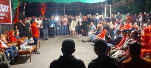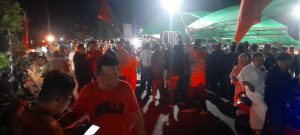 Bahkan Masa yang terlihat membludak nampak tumpah ruah hingga kejalan untuk menyambut kedatangan kedua Pasangan Calon dengan nomor urut 3 dari Partai Demokrasi Indonesia Perjuangan (PDIP) tersebut.