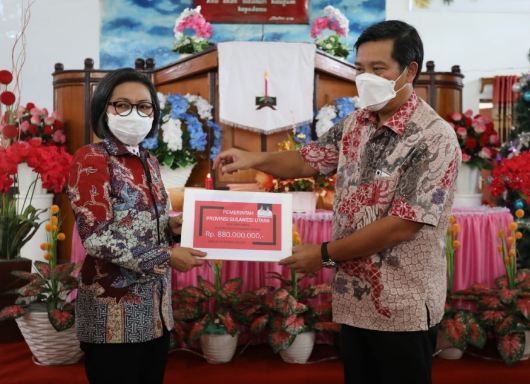 Selain itu, Wagub Kandouw menyerahkan dana hibah sebesar Rp880 juta bagi 44 Rumah Ibadah di Kabupaten Bolmong.