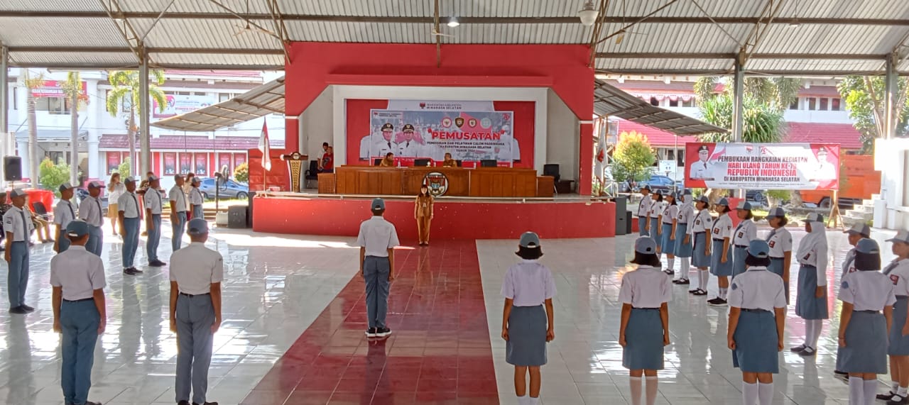 MINSEL, SULUTPOST – Sekertaris Daerah Minahasa Selatan (Minsel), Glady Nova Linda Kawatu SH,MSI, membuka secara resmi pemusatan pendidikan dan pelatihan calon Paskibraka Kabupaten Minsel tahun 2024 bertempat di gedung Waleta Pemkab, Selasa (06/08/24).