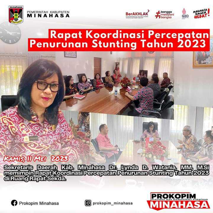 MINAHASA, SULUTPOST – Sekretaris Daerah Kabupaten Minahasa, Lynda D. Watania, memimpin Rapat Koordinasi (Rakor) Percepatan Penurunan Stunting Tahun 2023 di Ruang Rapat Sekda, Kamis 11/5/2023.