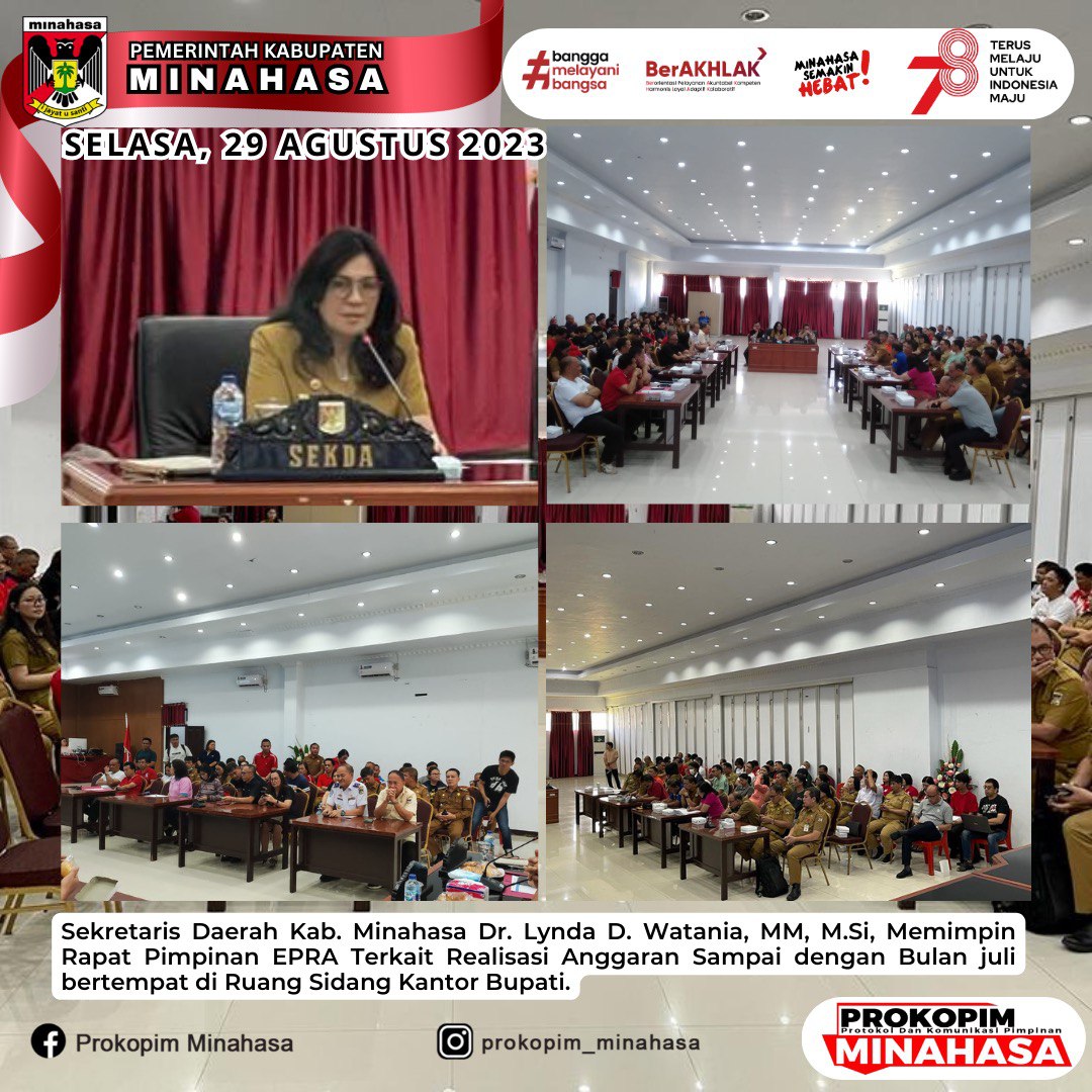 MINAHASA, SULUTPOST – Sekretaris Daerah Kabupaten Minahasa Dr. Lynda D. Watania, MM, M.Si, memimpin Rapat Pimpinan EPRA Terkait Realisasi Anggaran Sampai dengan Bulan juli bertempat di Ruang Sidang Kantor Bupati Selasa, 29/08/2023.