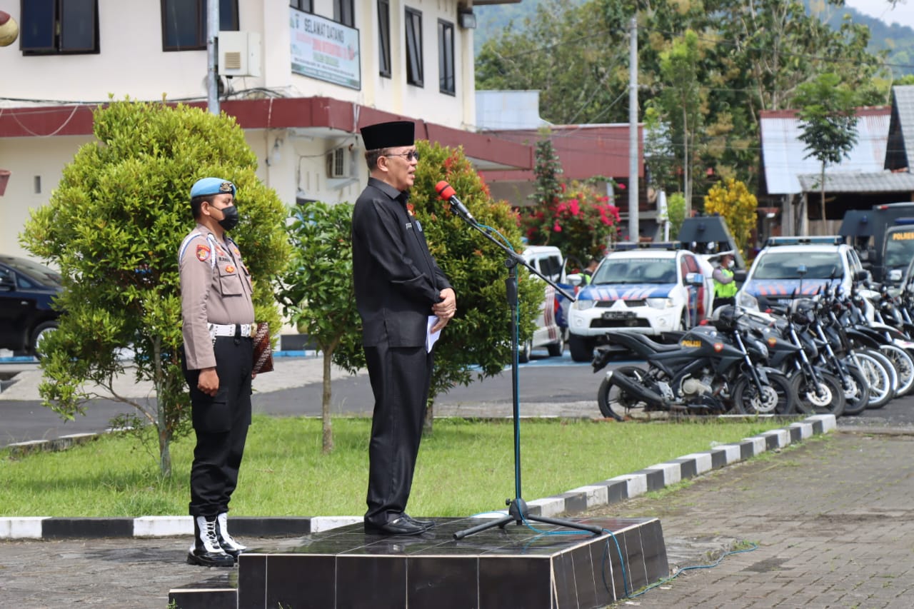 Saat upacara, Sekda Muntu membacakan amanat Kapolri Jendral Polisi Drs Sigit Prabowo M.Si.