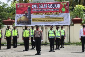 Tema yang diusung Polri kali ini yaitu, “Apel Gelar Pasukan Operasi Gelar Pasukan Samrat 2022, wujud sinergi Polri dengan instansi terkait untuk menjamin masyarakat aman dan sehat dalam perayaan Idul Fitri 1443 H.