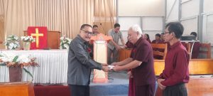 Foto: Penjabat Bupati Bolmong, di dampingi Sekretaris Badan Pekerja Sinode GMIBM Pdt Jemmy Tangkere STh,MTh.