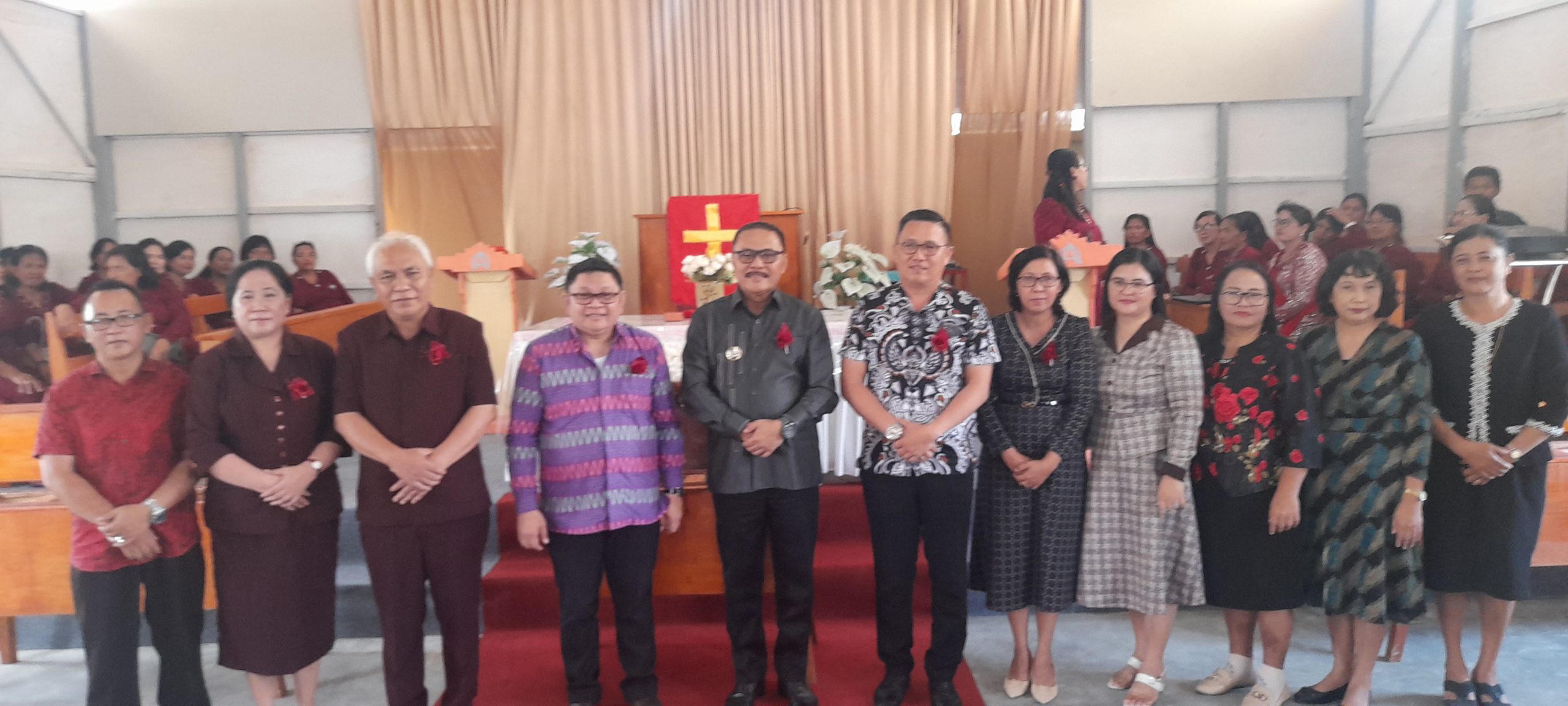Foto: Penjabat Bupati Bolmong, di dampingi Sekretaris Badan Pekerja Sinode GMIBM, dan para jemaat Zaitun Dumoga.
