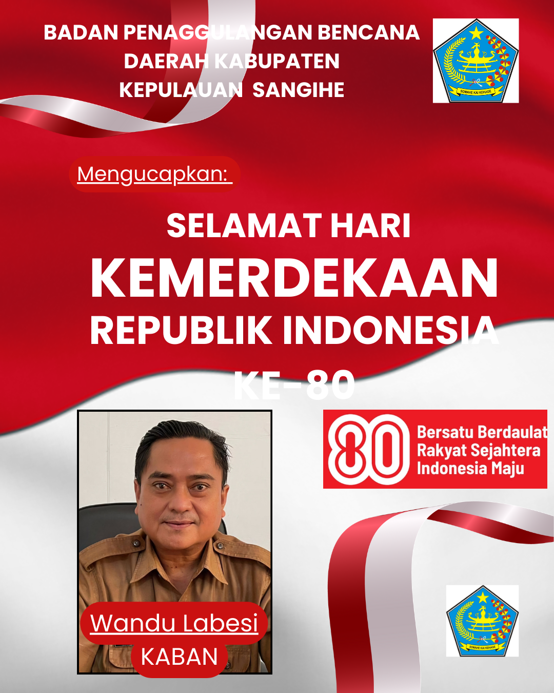 Kepala Badan Penanggulangan Bencana Daerah Kabupaten Kepulauan Sangihe Wandu Labesi bersama dengan seluruh staf mengucapkan dirgahayu RI ke-80