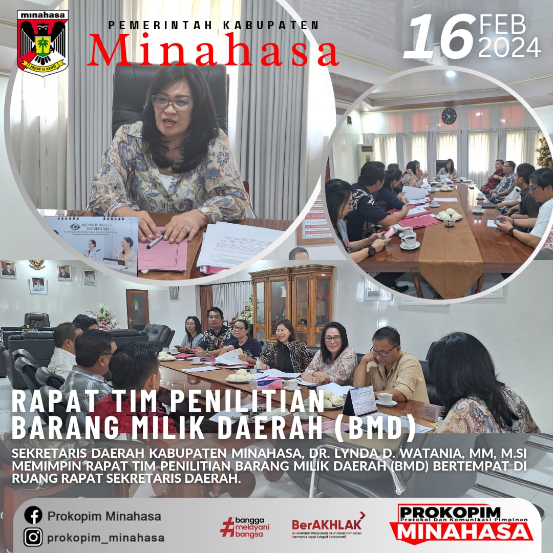 MINAHASA, SULUTPOSTonline.id – Pemerintah Kabupaten (Pemkab) Minahasa menggelar rapat penelitian terhadap pengelolaan aset-aset Barang Milik Daerah (BMD) di Ruang Kerja Sekda, Jumat (16/02/2024). Rapat dipimpin Sekretaris Daerah (Sekda) Dr. Lynda D. Watania, MM, M.Si, dihadiri oleh sejumlah pejabat terkait yakni, Asisten Pemerintahan dan Kesra, Asisten Administrasi Umum, Inspektur, Kepala BPKAD, dan Kabag Hukum. Sekda mengatakan […]